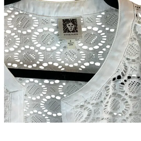 Keywords: Anne Klein, White Lace Jacket, Open Front Blazer, Elegant Jacket, Lace Blazer, Lightweight Jacket, Women's Jacket, Size 8, Summer Jacket, Spring Jacket, Boho, Bohemian, Evening Jacket