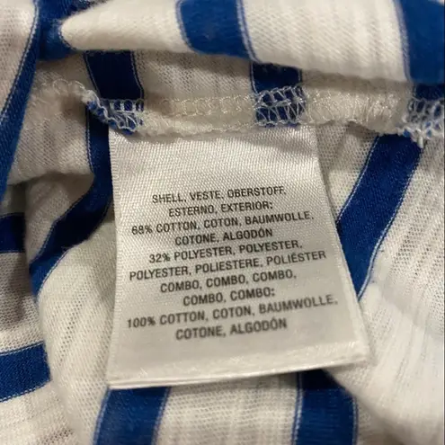 Anthropologie Little Yellow Button Top. Size small. Blue stripes with chambray denim and lace deta... Show more
