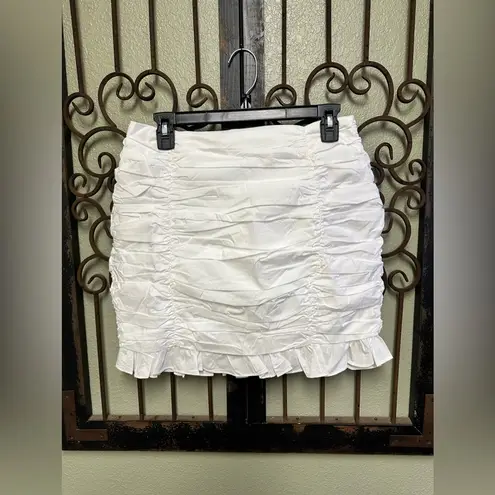 Anthropologie Endless Rose All over ruched mini white Skirt with ruffle hem & side Zipper closure Si... Show more