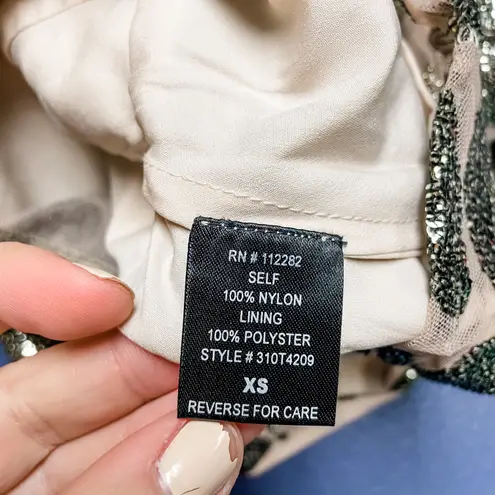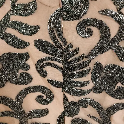 Women’s light pink / beige sleeveless peplum top from Anthropologie Greylin in style “Sequin Sleevel... Show more