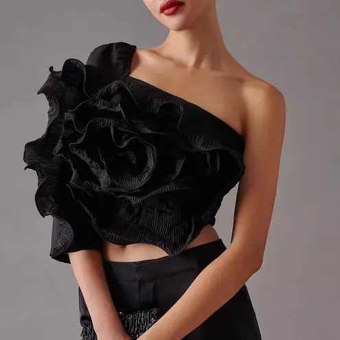 Anthropologie Let Me Be 3D Rosette One Shoulder Top Black Size Medium Great condition Approximate... Show more