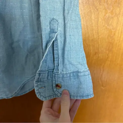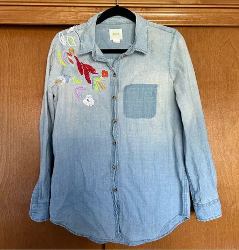 Size XS Light blue Multicolored embroidery and beading Chest pocket Full button front Collared Cotto... Show more