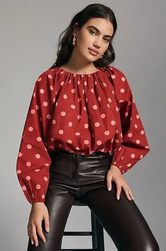 Anthropologie Maeve Poplin Bubble Polka Dot Blouse Red Size XS - $40 New With Tags - From Leslie