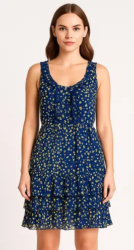 Anthropologie Mcginn women's blue yellow ruffle layered sleeveless scoop neck dress, size 8 Please... Show more