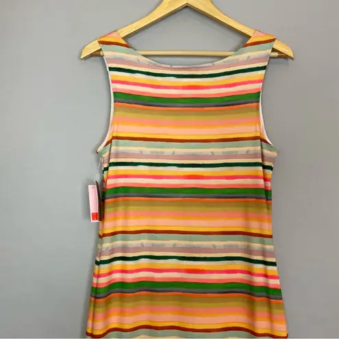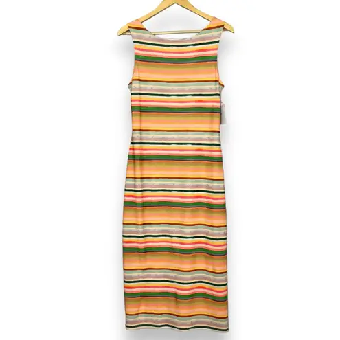 Mia Christopher dress sold at Anthropologie - sleeveless, midi length, horizontal watercolor-esque s... Show more