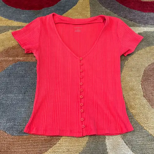 Anthropologie Mika Ribbed Short Sleeve Top Low Cut V Neck Buttons Size Small Excellent Condition!... Show more