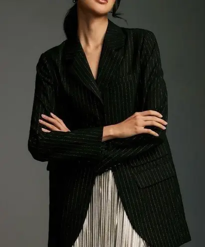 NWT Maeve Tiered Sparkle Longline Blazer in black with silver. Uniquely styled blazer with metallic... Show more