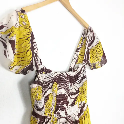 Anthropologie Panther Ruffle Maxi Dress Size XS Smocked Lightweight Cheetah Crafted using sustaina... Show more
