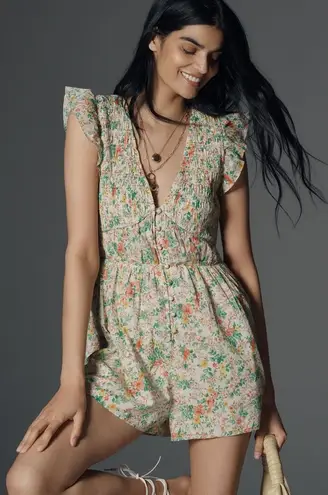 Anthropologie The Peregrine Romper in Ivory Floral - size XS, great preloved condition!