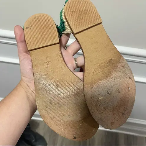 Jasper and Jeera for Anthropologie Size 37 Pom pom details eith green embroidered back Buckle closu... Show more