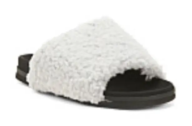 Anthropologie ROAM Cozy Fuzzy Slide Sandals in Black and Light Gray Size 7 - $68 New With Tags - From Heather