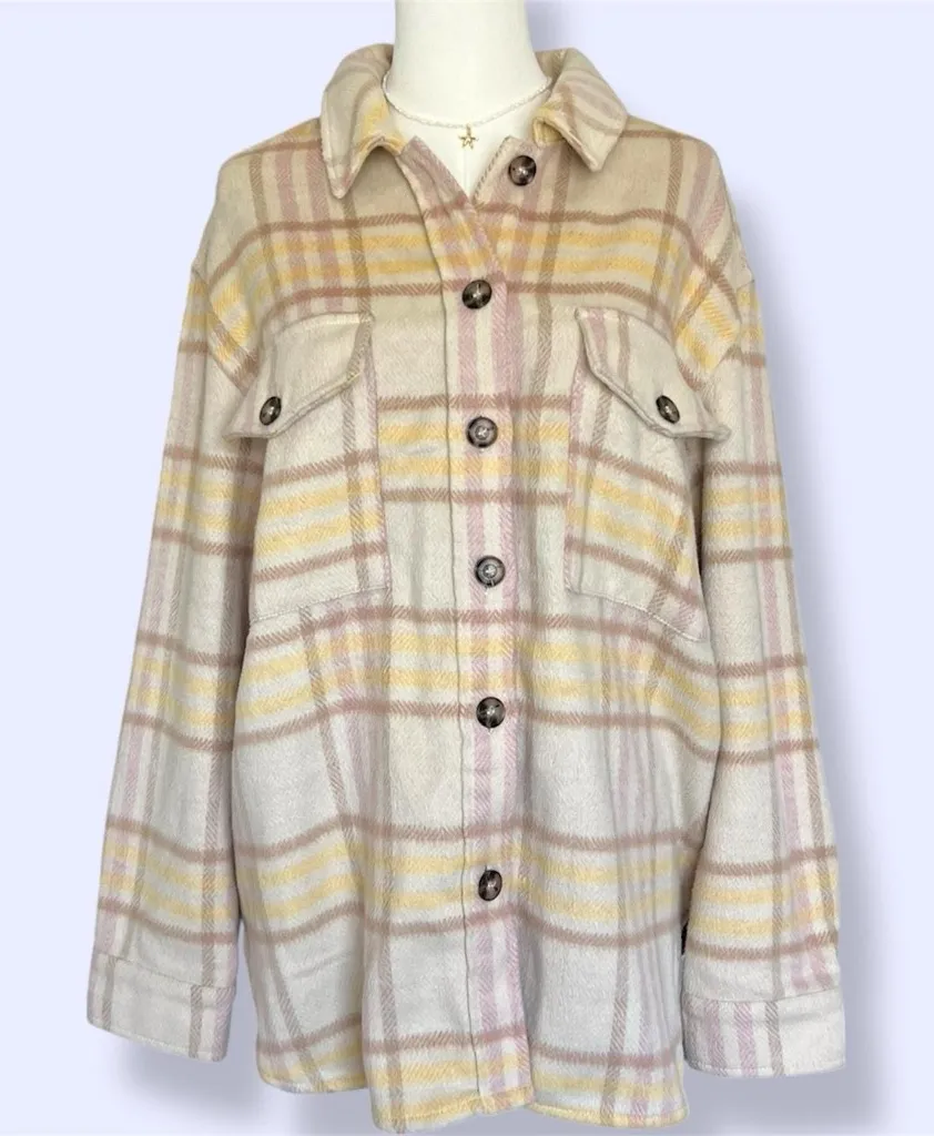Color: Maple Plaid — cozy, oversized fit with button front and chest pockets. A great staple for tra... Show more