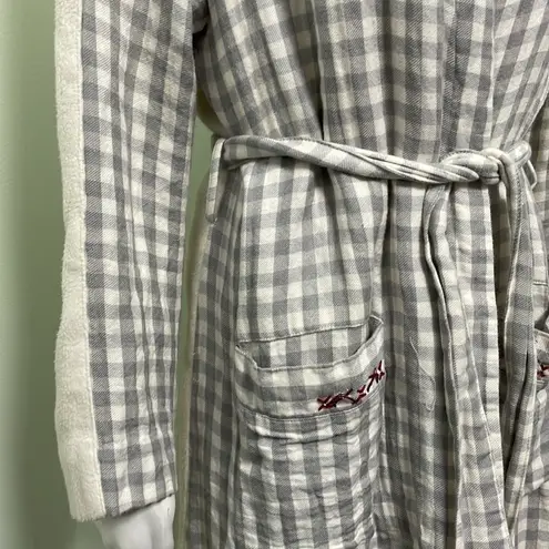 Super soft gray and cream checkered print robe with front pockets The pockets had decorative embroid... Show more