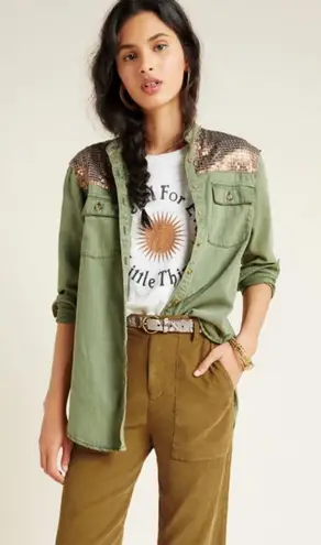 Gorgeous Anthropologie button down that doubles as a top or a lightweight shacket. Features an olive... Show more