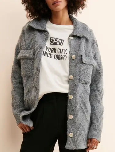 Anthropologie Knit Sweater Coat Good with some extra fuzzing wear Medium Grey Textured fuzzy kni... Show more