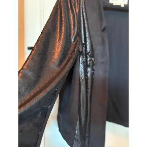 Anthropologie Shonda Sequined Jacket Open front, black sequin with faux suede trim Size Extra Large
