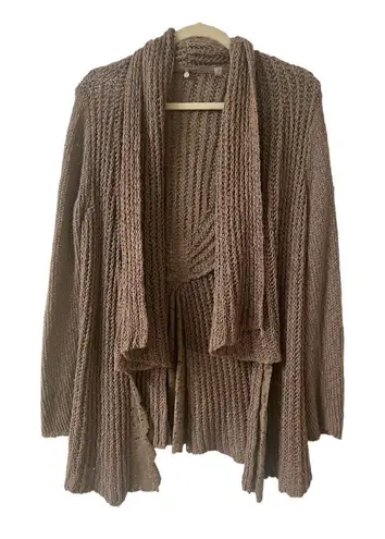 Anthropologie sweater by Knotted & Knotted Medium Brown color Eyelet lace accent Looser weave Shawl... Show more