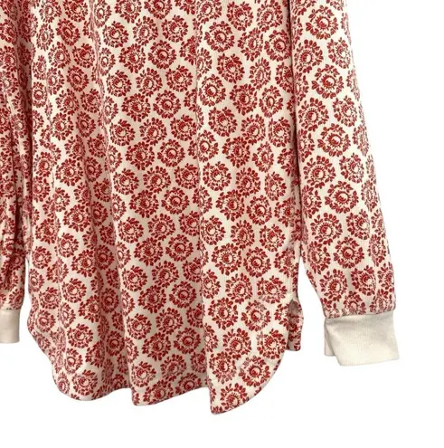 By Anthropologie Waffle Knit Patterned Henley Long Sleeve Top Red and Cream. Size XL. Oversized fit.... Show more