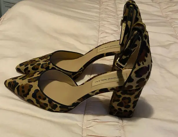 Real calf hair. Cheetah print. Adjustable ankle strap. Block heel about 2-3”. Light wear on the tip... Show more