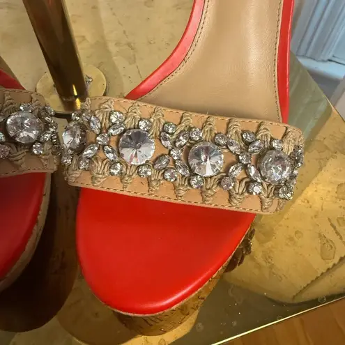 Elevate your style with these Antonio Melani wedges, featuring a striking red and tan color palette.... Show more