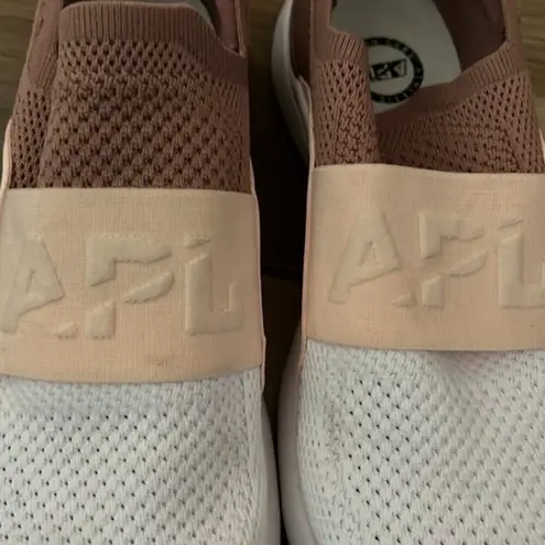 Gently used, dirts on soles and some marks on white mesh and light pink. Have not been washed. The ultimate intersection of luxury and performance, the TechLoom Bliss running shoe travels with you through all aspects of your life. Over two years in the making and APL’s lightest running shoe ever, it features a stunning slip-on design and custom elastic strap that allows for quick ingress and egress providing the ultimate comfort and a seamless fit. Perfect for travel, the Bliss uses APL’s proprietary Propelium® technology, designed to maximize energy generation and provide superior comfort while it maintains midsole structural integrity longer than conventional EVA. Upper: Polyester, Synthetic, Thermoplastic Polyurethane; Sole: EVA, Rubber Round toe Flat Pull-on Imported