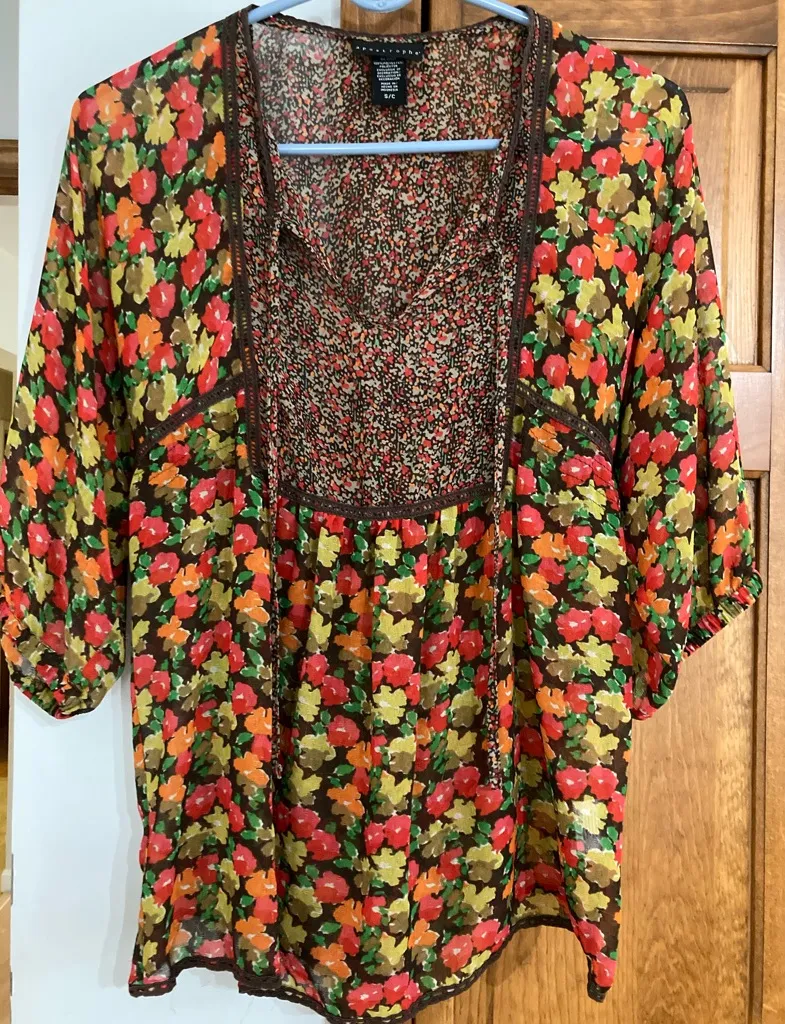 Apostrophe Floral Multicolor Blouse S Small Red - $16 - From Enid