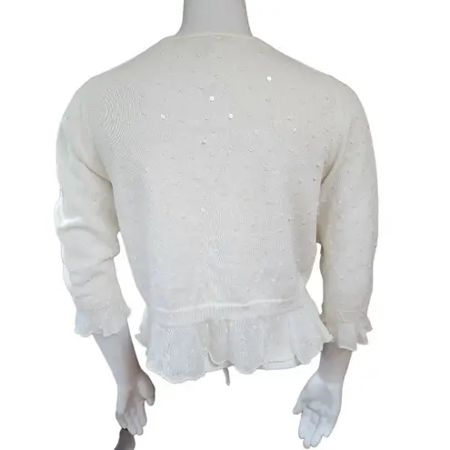 Apt. 9 cream knit cardigan with sequins on it. Size: Medium 55% Ramie 45% Cotton Pit to pit acros... Show more