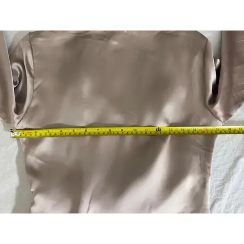 Keywords: satin blouse, wrap top, tie front blouse, long sleeve blouse, champagne blouse, cocktail blouse, party top, elegant blouse, dressy top, aqua blouse, xs blouse, satin top