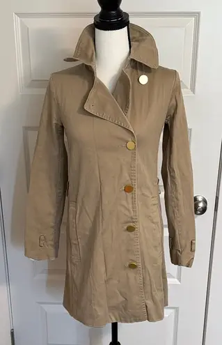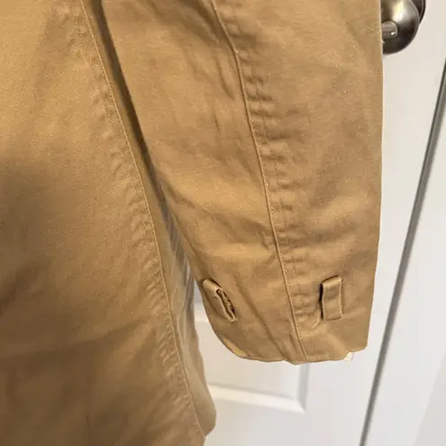 Elevate your style with this classic tan trench coat. Perfect for any occasion, this coat offers bot... Show more
