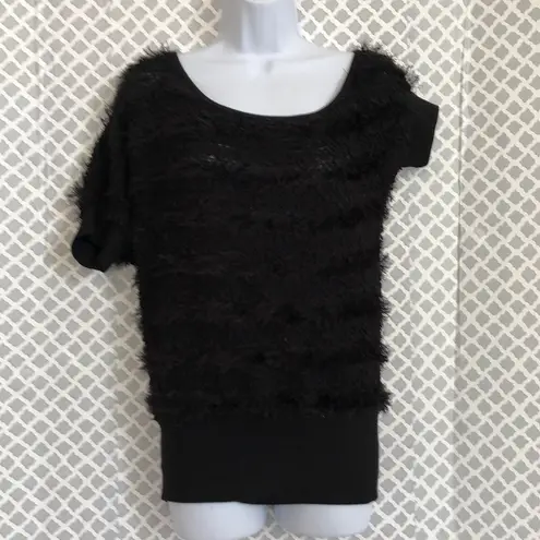Arden‎ B over shoulder asymmetric fluffy black sweater top women's size S - $24 - From Diana