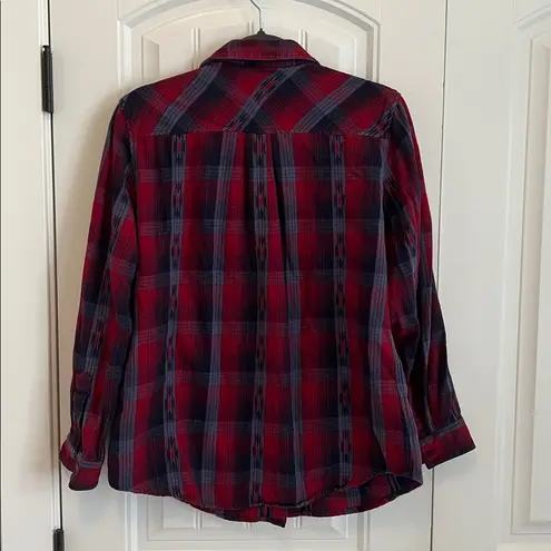 Classic Ariat shirt with red and navy plaid. Long sleeves and button-down front. Excellent preowned... Show more