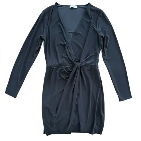 Elevate your wardrobe with this stunning Aritzia Babaton Jeff Long Sleeve Twist Front Jersey Dress in classic black. Made with a comfortable blend of polyester and spandex, this dress features a flattering V-neckline and a twist accent creating a faux wrap silhouette. Perfect for any occasion, whether it's a casual day out or a party, this dress is machine washable and easy to care for. Approximate measurements: Chest: 27.5” Waist: 13.5” Length: 34.5”