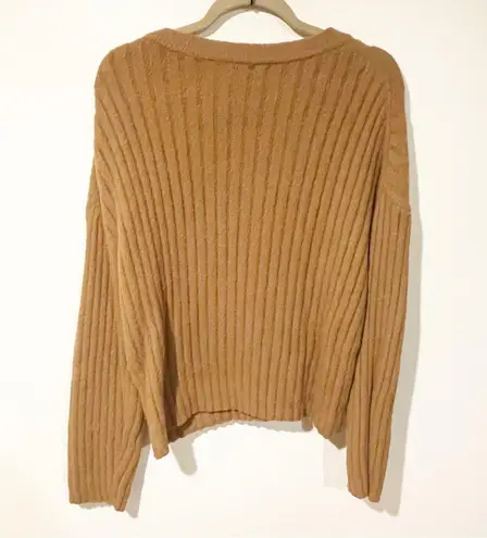 Aritzia Babaton Size Medium Brown Camel Brown V Neck Ribbed Long Sleeve Sweater - $22 - From Nacole