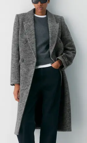 Elegant double-breasted coat with peaked lapel. Crafted from soft wool cashmere. Features a classic... Show more