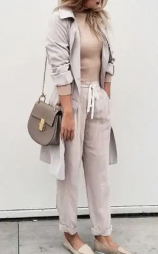 The essential nonchalant trouser. This is a lightweight trouser with a silk drawcord and rolled cuff... Show more