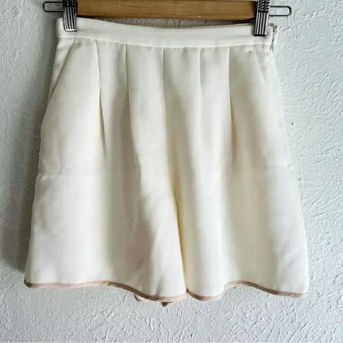 High waisted Pleated Side zipper Contrast tan trim Excellent preowned condition ▫️Waist-11.5”... Show more