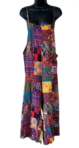 Art to Wear Boho Colorful Patchwork Cotton Jumpsuit Red Size XXL - $28 - From Second