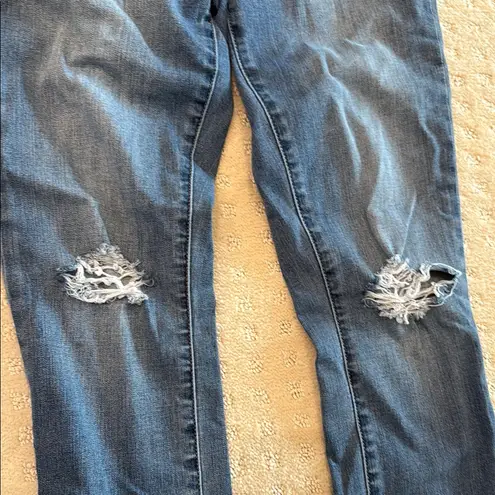 Stylish distressed blue jeans perfect for casual outings. Comfortable fit with a trendy look. Gently... Show more