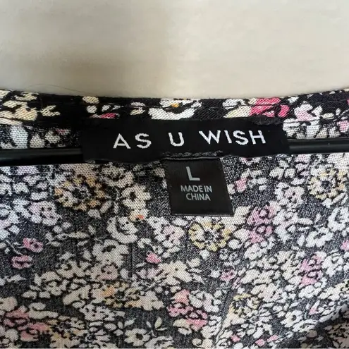 As U Wish Black Floral Romper Button Down Shorts Set Short Sleeve NWT Size Large V Neck Ra... Show more