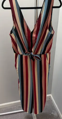 This As U Wish jumpsuit features a striking black and red color palette with a wrap design, a tie fr... Show more