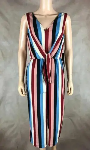 AS YOU WISH Pastel Striped Crop Length Jumpsuit Lightweight unlined jumpsuit with a double v-neck;... Show more