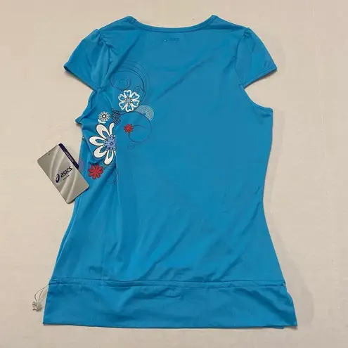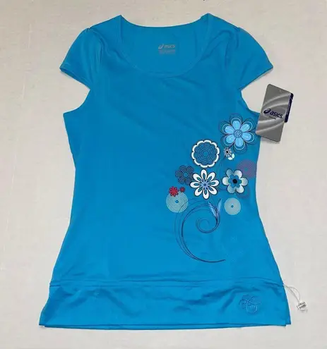 Asics Women's Blue Floral Print Pullover Cap Sleeve Short Sleeve Shirt (WR1187-4002) Size XS NWT 93... Show more