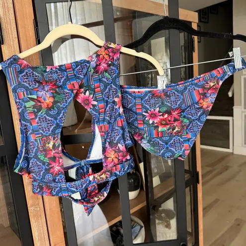 ASOS Aztec mexican kaleidoscope print bikini set colorful cutout tiefront floral Blue Size 8 - $25 - From Filo