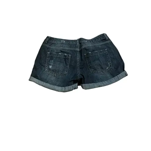 These are ASOS denim shorts in size 10. They are pre-owned and have some distressing. They are a dar... Show more