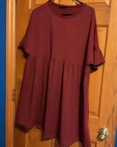 ASOS Design Curve super oversized frill sleeve smock dress in maroon (oxblood per ASOS website). Si... Show more