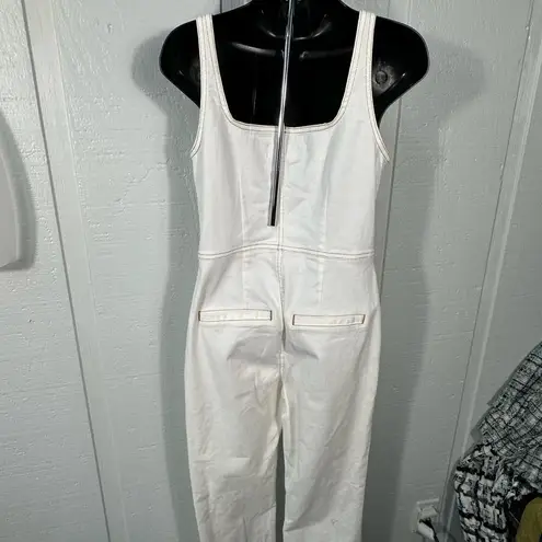 ASOS Design Denim Fitted White Pantsuit Sleeveless Square Neck Size 4 EUC 16 inches pit to pit 14... Show more