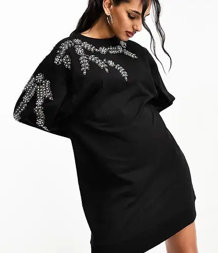 ASOS DESIGN oversized sweatshirt dress in black with stunning rhinestone floral embellishment detail... Show more