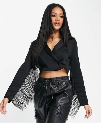 ASOS DESIGN Jersey Tux Crop Suit Blazer with Fringe Detail - Black - Size 6 (EUC) Turn heads in thi... Show more