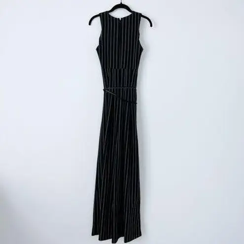 Black and white striped jumpsuit Sleeveless In good condition Comes with tie belt Size 2