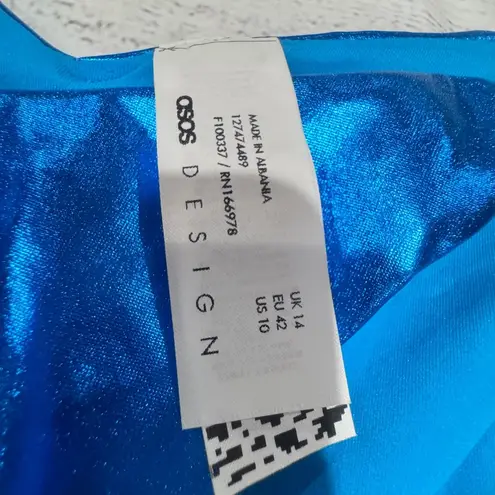 ASOS DESIGN metallic v front tie side Meet You By The Pool bikini bottom in bright blue Vibrant blu... Show more